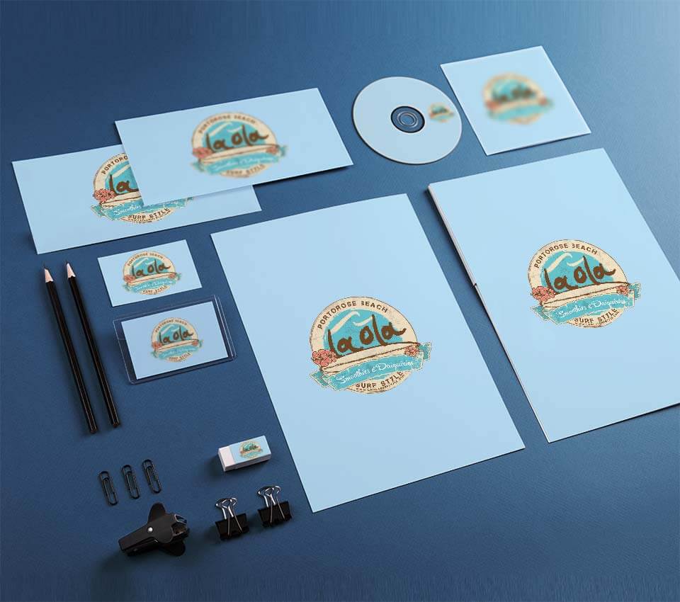 Pri podobi La Ola smo prioritetno skušali zajeti pridih Havajev. Vsi elementi zajeti v logotipu in ostalih grafikah predstavljajo slog surf življenja, ki je glavna tema lokala.