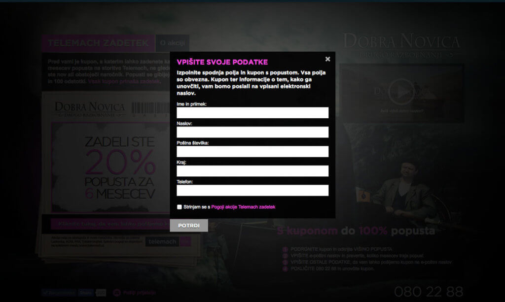 Za slovensko telekomunikacijsko podjetje TELEMACH smo razvili spletno nagradno igro