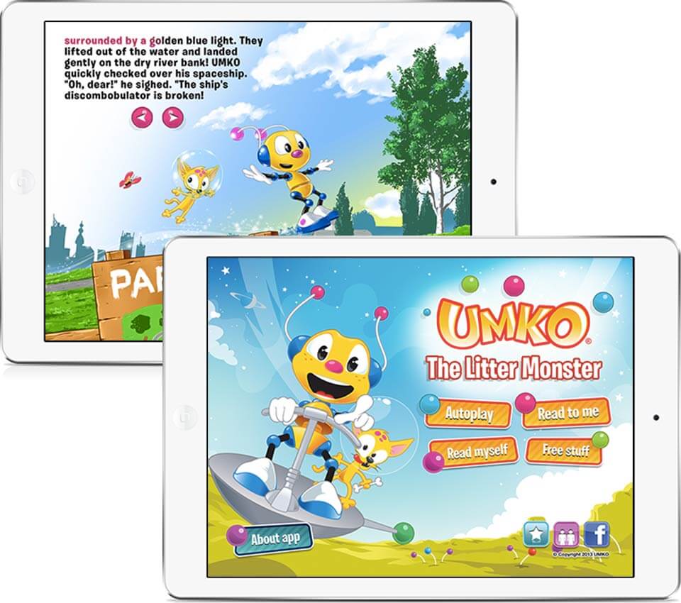 Znani otroški lik UMKO je dobil aplikacijo, ki v obliki interaktivne knjige z odličnimi animiranimi ilustracijami in kopico zvočnih efektov popelje otroke v pravljični svet tega nadobudnega robotka iz vesolja. Aplikacija omogoča avtomatsko branje vsebin v stilu bravanja besedila in s tem doda aplikaciji didaktično noto.